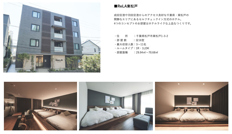Threesとは異なり、宿泊とThreesの強みである時間貸しなどのハイブリッド運用を前提としたホテルの開業支援をさせていただくサービスとなります。対象は戸建や小〜中規模(15-50室未満)でホテル投資を考えている物件オーナーなどになります。