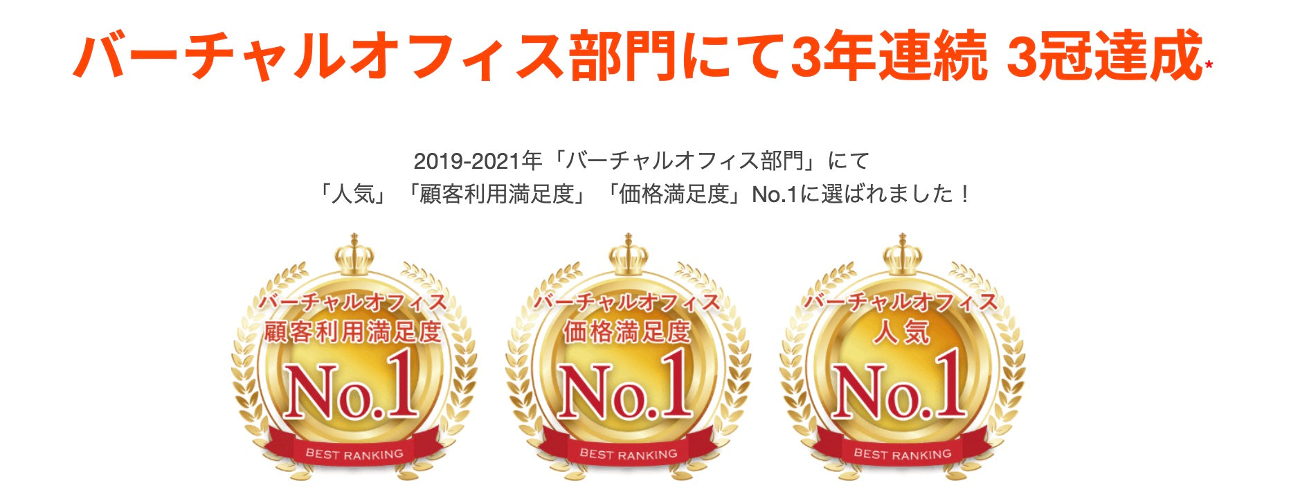 *「バーチャルオフィス」部門 2019年7月・2020年7月・2021年2月調べ(実査委託先:ゼネラルリサーチ) アンケートモニター提供元:ゼネラルリサーチ/調査期間:2019年7月8日~10日、2020年7月1日~2日、2021年2月10日~11日/調査方法:インターネット調査 調査概要:バーチャルオフィス10社を対象にしたサイト比較イメージ調査/調査対象:全国20代~50代の男女(2019年度)1087名(2020年度)1016名(2021年度)1002名